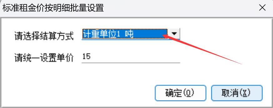 当选择“按明细结算”,“按明细大类”,点击明细设置,可以批量设置租金单价和结算方式如下图: