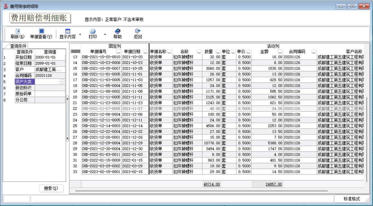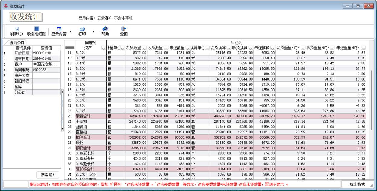 为了把资产的租代方理清,对于租赁站,即是正常客户,又是代租客户,必须要分开建两个客户,如客户可以建“XXX租赁站”和“XXX租赁站(代租)”,再分别建对应的正常和代租合同。通用功能:可以设置不常关注的列不显示,并会记忆,显示内容可以切换统计正常或代租合同对应的客户。