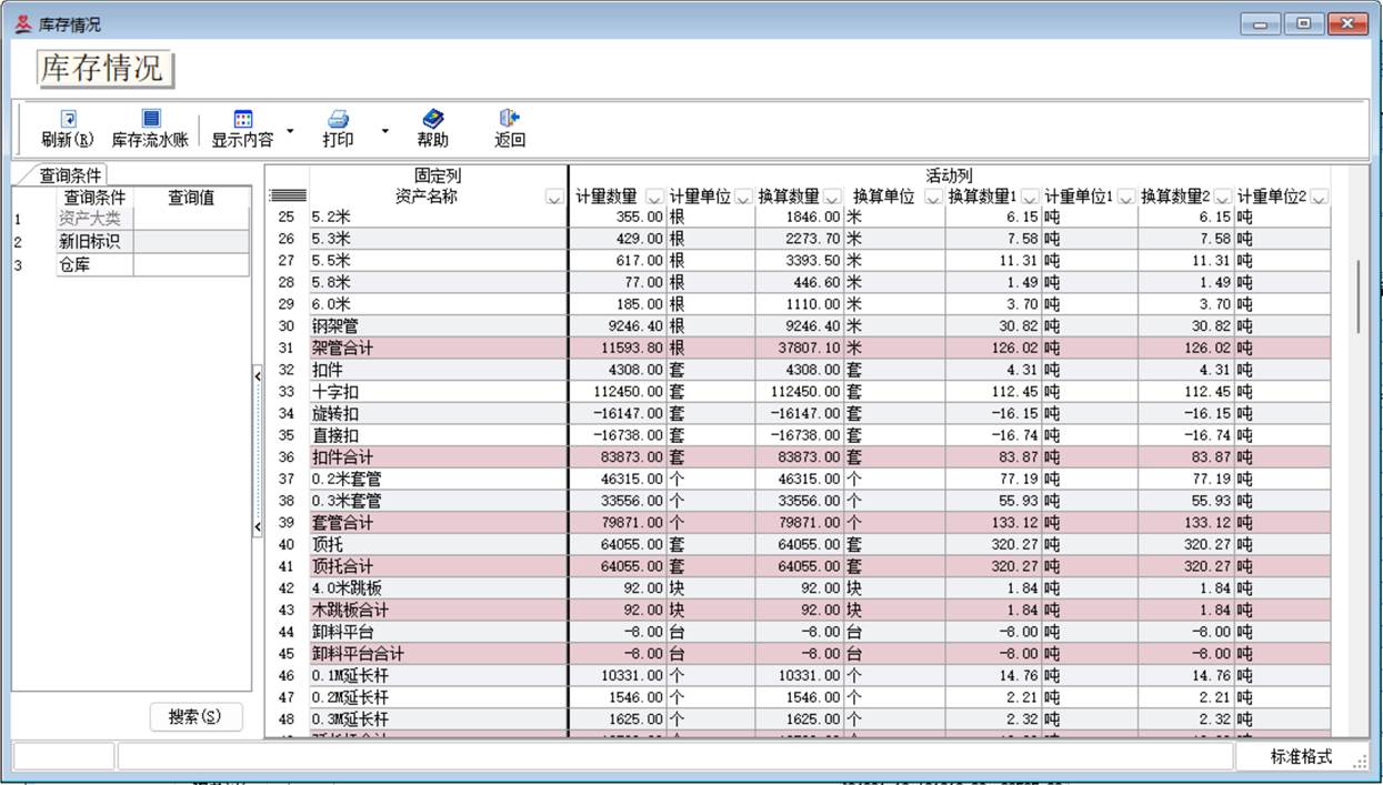 功能位置:基础数据-资产大类设置资产大类的编码、名称、计量单位、换算单位、计重单位1、计重单位2,明细计重比率一致、以及计重比率1、计重比率2。计量单位一般为录入单据时计数的单位,如“根”,“套”等。换算单位为补充的辅助单位,在资产档案中会要求录入相应明细规格的”换算比率”,记录计量单位和换算单位的比值关系,如钢管的换算单位为“米”。 计重单位1、计重单位2约定选取辅助单位为”吨”;计重比率1、2记录每”吨”等于多少换算单位的比值,如钢管,每吨等于多少米的比值,主要用于库存类相关报表估算重量用到;具体合同的相关比值设置在结算价中进行设置。