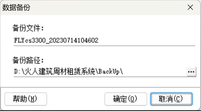 默认的路径为D:\火人建筑周材租赁系统\BackUp\;
